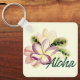 Söt-nyckelkedjan har vattenfärgstext plumeria bouquet med "Aloha"-text