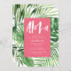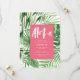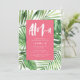 Moderna inbjudningar från den tropiska handflatan-löv-partyn för vattenfärgsblad. Handmålad effektskripttext. En del av en sommarinsamling av trender. Bright rosa girly färg kan ändras.