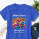 Denna examens Aloha Luau t-shirt är det perfekta sättet att tillföra en stänk av tropisk kul och coola hawaiianska vibbar till din fest! Funktioner frodig blomster "Aloha" med namn, skola och klassår på framsidan och baksidan. Eller så kan du ändra texten som du önskar. Gör en bra festpresent - beställ en individuellt personlig skjorta till var och en av dina vänner och familj. Grattis till examen!