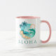 Tropisk havsgrafik med "Aloha" i modernt typsnitt