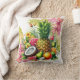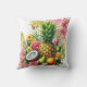 En vacker Färgad Tropical Dekorativ kudde. Med Rosa och Gula blommor och ananas vattenfärg.