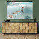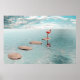 A minimalist surreal artwork featuring a solitary flamingo standing on stepping stones above calm water, surrounded by open space and soft light. The composition evokes themes of solitude, balance, patience, and inner calm. With its clean lines and tranquil atmosphere, this piece is ideal for modern interiors, contemporary wall art, and collectors drawn to quiet, contemplative visuals.