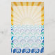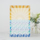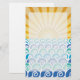 Brevpapper med design av olikt skuggar av blåttvågar med solen som stigning på horisonten.