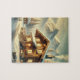 Den alpininspirerade vinterscenen med en mysigt kal omgiven av snö-täckt träd och stora berg. Perfekt för rysk dekoration, säsong konst och helgdag inspiration!