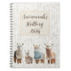 Knitting journal to personalize with a title. Four cute, white and brown alpacas, wearing sweaters, make a fun border along the bottom. Garter stitch knitting is the background image.