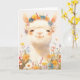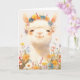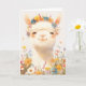 Den här glada gratulationskortet visar en bedårande alpaca prydd med en färgglad blomsterkrans, leende stillsamt mitt i en livfull samling vårblommor. Med sina mjuka pastellfärger och akvarellinspirerade stil fångar detta kort en känsla av oskuld och glädje, vilket gör det perfekt för födelsedagar, tackkort eller något annat tillfälle som kräver en touch av lycka. Idealiskt för djurälskare, barn och alla som uppskattar fantasifull, naturinspirerad konst, ger detta kort värme och charm till alla som tar emot det.