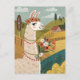 Alpacka med blommor folkkonst vykort