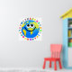 Världens lycklig-karaktär omgiven av alfabetets brev.