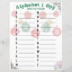Ett enkelt sätt att spela är att börja med brev A. Skrivan ner något julrelaterat som man kan se börja med brev. Det kan vara ett ställe, en person eller ett objekt. T.ex. A-ängel, B-Bow, C-Julklapp och behålla som passerar genom varje brev! Om du har spelare i många kan du ta turerna och söka efter ett objekt och få de andra spelarna att gissa innan du skriver ner det du spikade. Ett annat sätt att spela: 1. Skrivan innehåller separata listor över det sak som du ser och börjar med brev i Alfabet 2. Jämför listor när alla spelare har skrivit ett svar för alla 26 brev. 3 Kor har samma föremål som andra spelare. Den som har de flesta svar som inte är bortkorsade vinner.