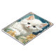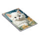 Bärbar dator med en kattunge i Art nouveau stil i Alphonse Mucha! En vit och fluffig kattunge med blå ögon äter med gula blommor. En söt gåva till kattälskare och Art nouveau-samlare!