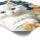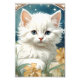 Photo Print med en kattunge i Art nouveau stil i Alphonse Mucha! En vit och fluffig kattunge med blå ögon äter med gula blommor. En söt gåva till kattälskare och Art nouveau-samlare!