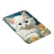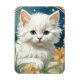 Magnet med en kattunge i Art nouveau stil i Alphonse Mucha! En vit och fluffig kattunge med blå ögon äter med gula blommor. En söt gåva till kattälskare och Art nouveau-samlare!