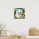 Poster med en kattunge i Art nouveau stil i Alphonse Mucha! En vit och fluffig kattunge med blå ögon äter med gula blommor. En söt gåva till kattälskare och Art nouveau-samlare!