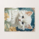 Pussel med en kattunge i Art nouveau stil i Alphonse Mucha! En vit och fluffig kattunge med blå ögon äter med gula blommor. En söt gåva till kattälskare och Art nouveau-samlare!