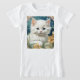 T-Shirt med en kattunge i Art nouveau stil i Alphonse Mucha! En vit och fluffig kattunge med blå ögon äter med gula blommor. En söt gåva till kattälskare och Art nouveau-samlare!