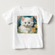 Baby T-Shirt med en kattunge i Art nouveau stil i Alphonse Mucha! En vit och fluffig kattunge med blå ögon äter med gula blommor. En söt gåva till kattälskare och Art nouveau-samlare!