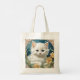 Tote Bag med en kattunge i Art nouveau stil i Alphonse Mucha! En vit och fluffig kattunge med blå ögon äter med gula blommor. En söt gåva till kattälskare och Art nouveau-samlare!
