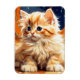 Magnet med en orange kattunge i Art nouveau stil i Alphonse Mucha. Det här söta kattunge med blått ögon tittar på dig mot en bakgrund av en nattlig fullt himlar av stjärnor. En underbar gåva till kattälskare och Art nouveau-samlare!