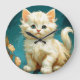 Sluss med en vit katt i Art nouveau stil i Alphonse Mucha! En fluffy vit katt börjar vid ett stort ögonögon mot en blå bakgrund. En underbar gåva till kattälskare och Art nouveau-samlare!