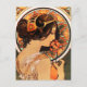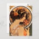 Alphonse Mucha Cow Slip-vykort. Litografen poster. Den tjeckiske konstnären Alphonse Mucha skapat några av de mest gripna poster och annonser från rörelsen art nouveau. Cow Slip är en vacker blomma som innehåller en söt tjej med svart hår med en svår rosa klänning. Hon har en blombukett i ena handen och målningen är kraftigt utsmyckad i typiska Mucha mode. En underbar gåva till fläkt av Alphonse Mucha, art nouveau och vintage trycks.