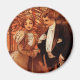 Alphonse Mucha Flirt magnet. Poster reklam från 1899. Den tjeckiske konstnären Alphonse Mucha skapat några av de mest fängslande reklamen från rörelsen Art nouveau. Flirt är en kommersiell poster för Biscuits Lefevre-Utile med en söt ung kvinna som bär en rosa Viktoriansk klänning som flirtar med en bländande ung man med mustasch som bär en svart tuxedo. Paret omges av löv, inklusive exotiska vita blommor. Företagets logotyp visas grund på poster tillsammans med Muchas namnteckning och datum.