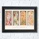 En bra art nouveau poster med bilden The Seasons (1900) av den tjeckiska konstnären Alphonse Mucha (1860-1939). Fyra mode-porträtt med kvinnor som personifierar höst, vinter, Vår och sommar. Två kvinnor som håller blombuketter, en kvinna klädd för snö och en kvinna på höst färger som håller en tallrik äpplen.