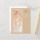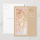 Ett vykort för bra med vintagen som illustreras av Alphonse Mucha från The Flower Series, Ro (1898), som har återupprättats och förbättrats digitalt. En kvinna på en kvällsgäst omgiven av rosa och gul ros.
