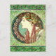 Alphonse Mucha Laurel-vykort. Litografen poster från art nouveau. Den tjeckiske målaren Alphonse Mucha skapat några av de mest uppskattade reklamen och poster under art nouveau. Laurel är en vacker vår-anklagelse med en underbar ung kvinna i profil med blommor och lagrar i hennes hår. Porträtt styrs av ett krångligt mönster av sammanlåsande löv. En vacker gåva till fläkt av Mucha, art nouveau och vintage konst poster.