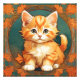 Fotoutskrift med en orange katt stil i Alphonse Mucha! Kattunge med grönt ögon, som är så förtjusande, är höst löv. En underbar gåva till kattälskare och Art nouveau-samlare!