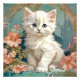 Fotoutskrift med en vit katt stil i Alphonse Mucha! Den här blåögda fluffa kattungen äter med rosa blommor och blåfiltar. En fantastisk gåva till kattälskare och Art nouveau-samlare!