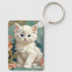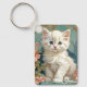 Nyckelkedja med en vit katt stil i Alphonse Mucha! Den här blåögda fluffa kattungen äter med rosa blommor och blåfiltar. En fantastisk gåva till kattälskare och Art nouveau-samlare!