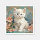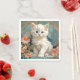 Napkins med en vit katt stil i Alphonse Mucha! Den här blåögda fluffa kattungen äter med rosa blommor och blåfiltar. En fantastisk gåva till kattälskare och Art nouveau-samlare!