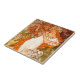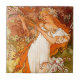 Tile med Alphonse Mucha’s färg lithograph Vår (1896). En vacker kvinna i en vit klänning spelar ett lyre under blommar träd. En underbar gåva till fläkt av Art nouveau och tjeckiska konstsamlare.