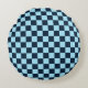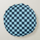 Ett blått och svart schackbrädemönster med jämnt fördelade rutor. Den upprepade designen skapar en känsla av symmetri och optisk illusion.