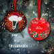 Hand målade porträtt av denna söt alpina mjölkget i Santa Hat - på en djup röd bakgrund med mousserande guld snöflingor - Goat julprydnadsföremål för din Helgdag ge, Julgran eller fönsterdekorationer - anpassa datumet på baksidan