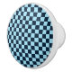 A blue and black checkerboard pattern with evenly spaced squares. The repetitive design creates a sense of symmetry and optical illusion.