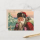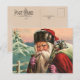 Den här allvarliga tomten har trekigt bergen för att ta med dig julen önskemål. Han är på modet klädd i en varm röd jacka accentuerad med ljusa rosa handskar. Han är redot för ert personliga budskap. I likhet med det antika stil har vykortets baksida också en 1800-talskonstruktion.