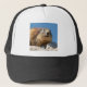 Closeup Alpine marmot sten med blå himmel som bakgrund, i Alpernorna Fransk, i departementet Savoie vid La Plagne