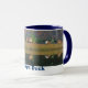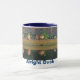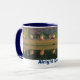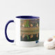 Köp som denna roliga mugg med fotografiskt avbildar av en ro av ankor som står på flodstranden med spegelförsedda reflexioner i det nedanföra vatten. Nedanfört är fotoet texren "duckar Alright",