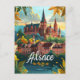 En pittoresk och nostalgisk avbildning av Alsace, Frankrike, känd för sina charmiga byar, frodiga vingårdar och natursköna landskap. Designen fångar regionens karakteristiska korsvirkeshus, böljande vingårdar och pittoreska gator i städer som Strasbourg och Colmar. Konstverket, som är utfört i en vintage-stil, frammanar Alsaces tidlösa skönhet och kulturella rikedom och inbjuder betraktaren att utforska den pittoreska landsbygden och det rika kulturarvet.