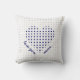Älska dig mer… dekorativ kudde i blekgrått & marinblått på vit. Ror av mycket lilla gråa hjärtor på vit, och en centrerad större marinblå hjärta (som också göras upp av ror av mycket lilla hjärtor) och ord: älska dig mer… i marinen som inramar den lägre kanten av hjärtan.