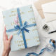 Jag älskar dig till månen och det tillbaka guldet med hjärta på mjuka blått