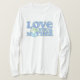Främja jorddagen, och miljömedvetandeet all årsrunda med denna 70-talretro-stil, för damlångärmaden "älskar för din mor" t-skjortan. Designen bedrövas för en vintagelook. Välj din t-skjortan stil eller tillfoga text för ett personlighandlag!