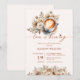 Elegant kalligrafi "Älskan bryggs" bröllopskaffe beige blomsterkaffe tematerad inbjudan.