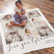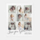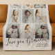 Denna anpassade filt med fotokollage är en hjärtlig hyllning perfekt att ge i present till en älskad mormor eller farmor. Med en rutnätslayout med nio personliga fotoslingor visar den vackert upp skattade familjeminnesstunder i en mjuk, modern estetik. Den nedre delen av filten är prydd med elegant skrivstil som lyder "älskar dig Mormor/Farmor" tillsammans med ett anpassningsbart meddelande från barnbarnen, vilket ger en personlig och emotionell touch. Perfekt för mors dag, födelsedagar eller speciella tillfällen, förvandlar denna sentimentala design varma minnen till en mysig souvenir som firar kärlek, gemenskap och den speciella banden mellan mormor/farmor och barnbarn.