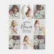 Denna personliga filt med fotokollage är ett gripande och stilrent sätt att visa kärlek och uppskattning för nana. Med ett kollage av nio anpassade foton arrangerade i en ren gridlayout fångar den vackert dyrbara minnen med barnbarnen. I mitten står elegant handskriven typsnittsstil som lyder "Love You Nana" tillsammans med ett hjärtligt meddelande som kan anpassas med barnbarnens namn. Den neutrala färgpaletten och mjuka layouten ger den en mysig, modern estetik som kompletterar alla heminredningar. Perfekt för mors dag, födelsedagar, julhelger eller speciella tillfällen, är denna anpassade filt en varm och meningsfull souvenir som firar bandet mellan nana och hennes barnbarn.