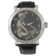 Älskar en fattig pigmänniska som sitter med korsla armbandsur