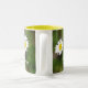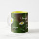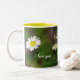 Den högväxt, gul och vitmuggen med daisy i trädgård och text "älskar jag dig", och "älskar jag dig för evigt och alltid.",