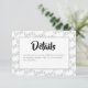 Ett enkelt, men modernt brölloppsdetaljkort med kärlek som upprepas i bakgrunden. Ett stilfullt skript är ihopparat med en modern typsnitt för att skapa en elegant look.