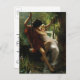 Lätt att anpassa vykortet för Spara till datum i bröllop! Vintage illustration av bilden av Victorian kärlek och romantik, där ett ungt par i kärlek svingade på en sväng från ett träd i en skog. Konstnär: Pierre Auguste Cot, Vår, 1873.
